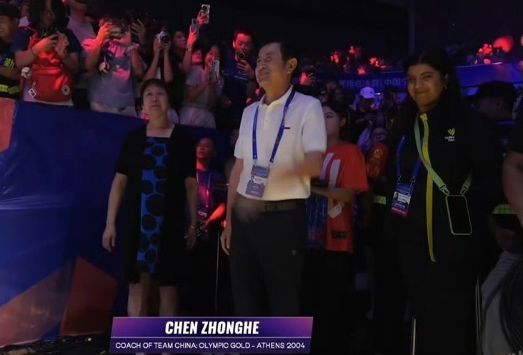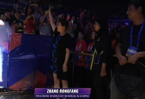 看这两人的身影,真的让人感叹!两人都是中国女排的功勋教练和队员!想当年陈忠和多么英俊潇洒,有儒帅之称,但是现在也老人!张蓉芳当年在场上英姿飒爽,现在也年纪大了!唯一遗憾的是,没有看到中国女排名帅郎平的身影!